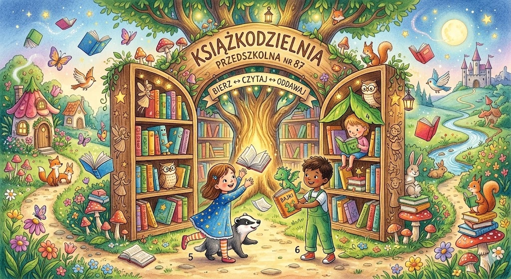 Właśnie dlatego w naszym przedszkolu mamy Książkodzielnię – magiczne miejsce wymiany opowieści. 🏰🐉